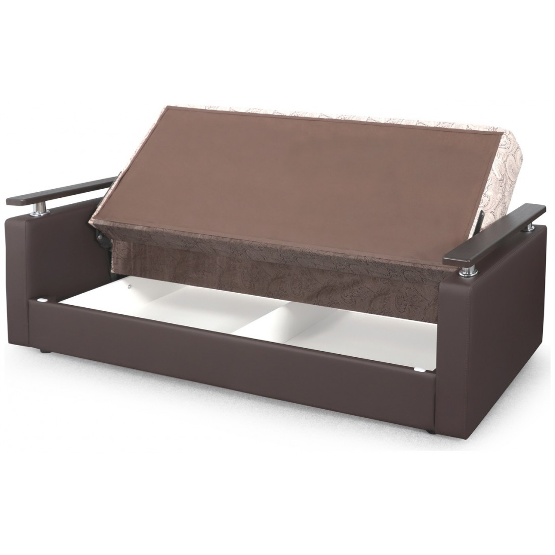 Под сидением дивана находится вместительный ящик из ЛДСП для белья, он экономит пространство в комнате и идеально подходит для хранения вещей.