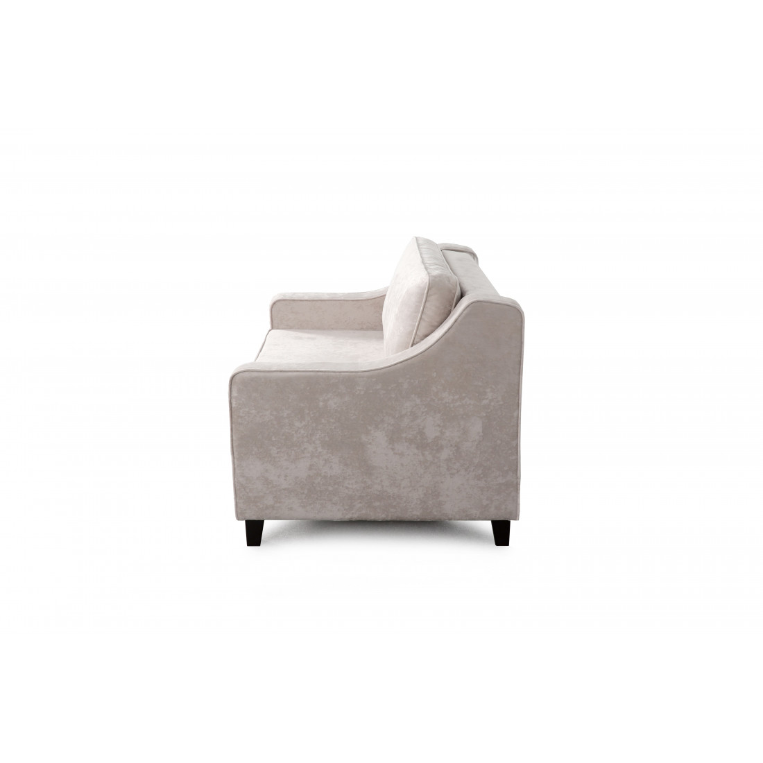 Независимый пружинный блок в основании дивана выступает в качестве полноценного ортопедического матраса. Невероятно мягкий и тактильно приятный велюр не только роскошно выглядит, но еще и практичен в эксплуатации, а также имеет отличные показатели износоустойчивости. Фигурная форма подлокотника создаст дополнительный комфорт и удобство.