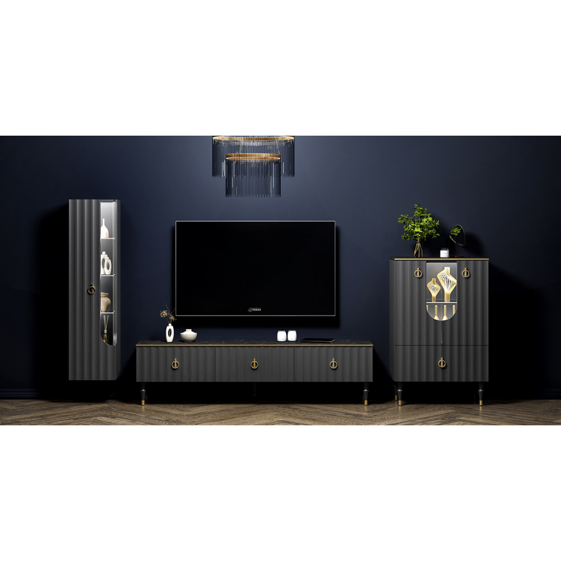 Комбинированный шкаф в гостиную МН-043-01 серии Лоренсо от фабрики Мебель-Неман.Петли с доводчиками, рассчитанные на десятки тысяч циклов закрывания, работают плавно и бесшумно.Фасады и боковые панели в коллекции Лоренсо выполнены с инновационным покрытием Serica от итальянских производителей. Это современное, матовое, антибликовое покрытие, приятное на ощупь SOFT-TOUCH. Поверхность защищена от царапин, благодаря специальной обработке. При возникновении микродефекта, его можно легко устранить с помощью термического сглаживания. Технология ANTI-FINGERPRINT гарантирует отсутствие отпечатков пальцев на фасадах.