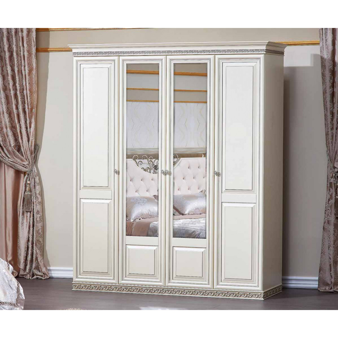 Шкаф 4-х дверный Берта (жемчуг)