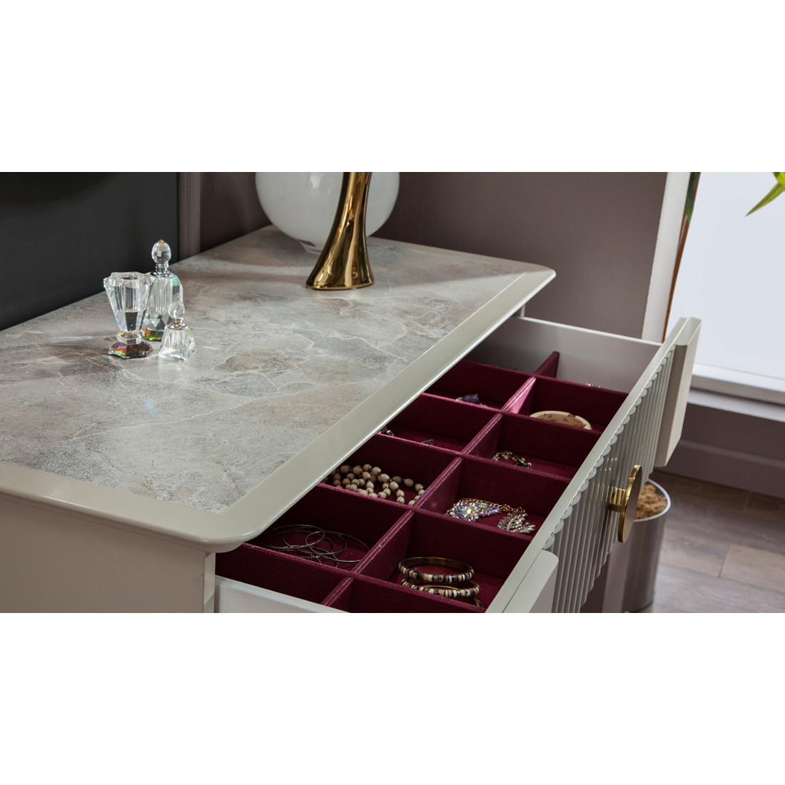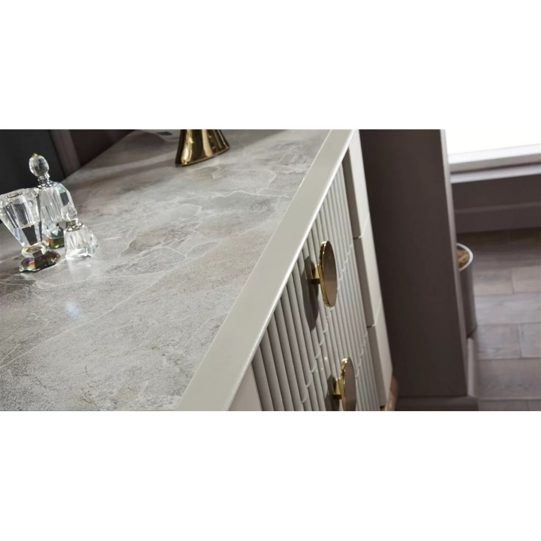 Туалетный столик "Песаро" выполнен в стиле неоклассика. Интересная текстура дерева подчеркивает уникальность среди конкурентов, а идеально подобранные размеры изделия делают его крайне удобным для использования.
